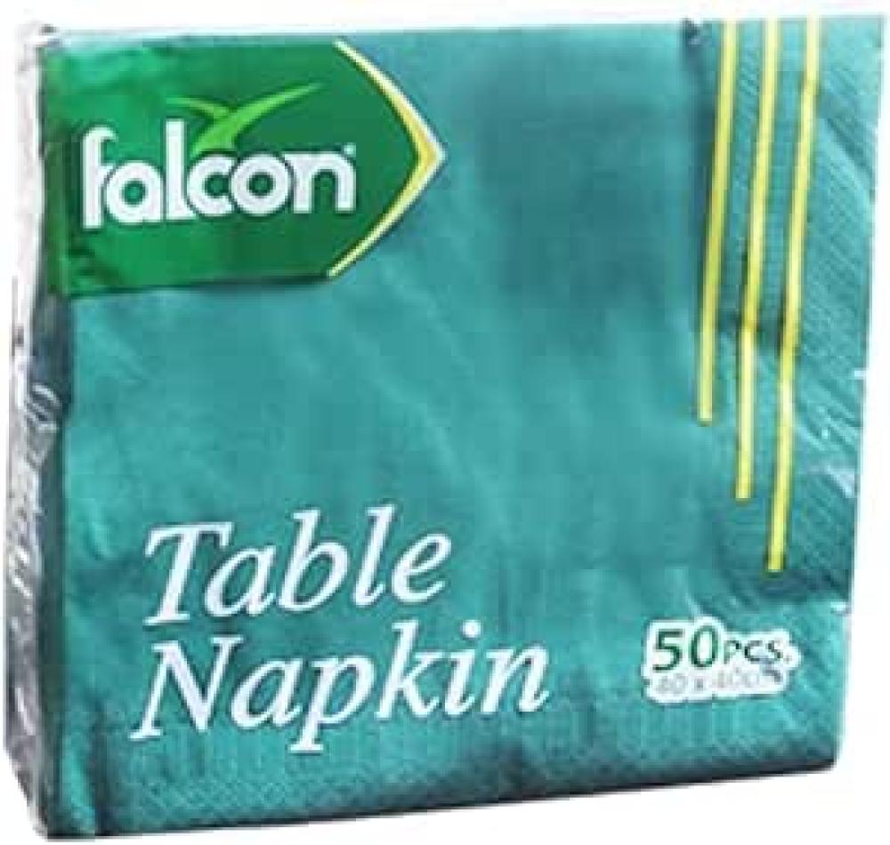 أضف لمسة من الأناقة والنظافة إلى موائدك مع مناديل المائدة من فالكون بلونها الأخضر الجميل. مصممة للاستعمال مرة واحدة، لتمنحك تجربة ضيافة مرتبة وعملية سواء في المناسبات أو الاستخدام اليومي.